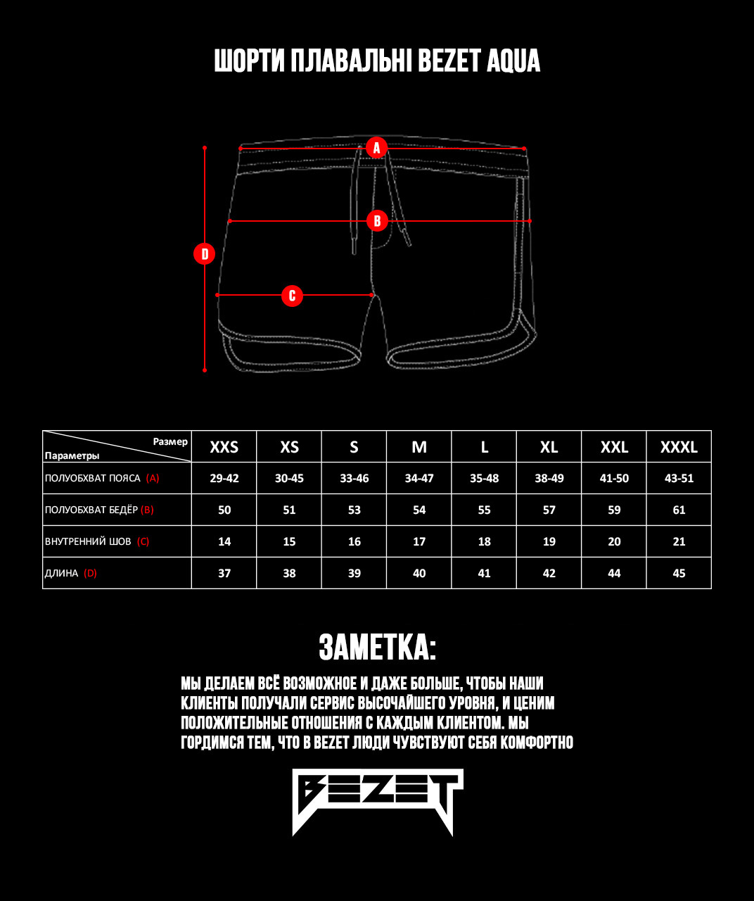 Шорти для пляжу оснащені двома кишенями для рук. У них можна класти необхідні дрібниці. Шорти з білою смужкою декоровані фірмовим принтом BEZET. Вони не сковують рухів, даючи змогу встановлювати довільні елементи, як в воді, так і на суші.